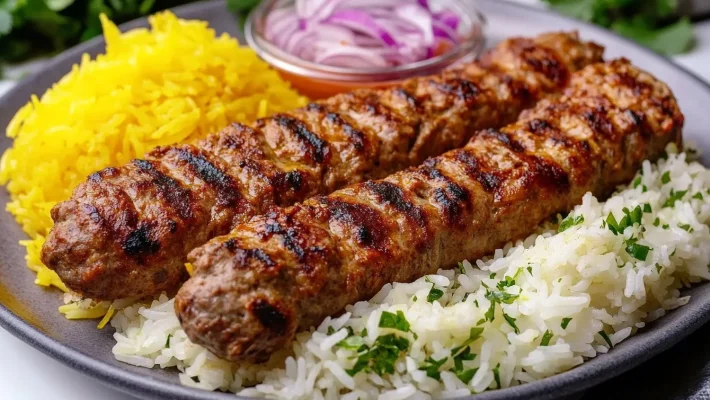 Flame is basically a place to get Kebabs — juicy skewers of ground chicken or marinated chicken breast, tartly mineral rack of lamb, shish kebab and fish kebab, and a wonderful kebab of Cornish game hen, accompanied by enormous drifts of rice.